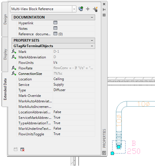 Sie können manuell einige Eigenschaftssatzdaten ändern, nachdem Sie einem Bauteil eine Beschriftung hinzugefügt haben. Wenn der Eigenschaftssatzwert automatisch abgeleitet ist, wie etwa eine Anschlussgröße, muss das Bauteil selbst geändert werden, um den gewünschten Eigenschaftssatzwert zu erzielen.