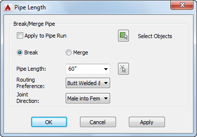 | Anwenden des Längenbefehls auf die gesamte Rohrstrecke | Wählen Sie die Option zum Anwenden auf die Rohrstrecke. |