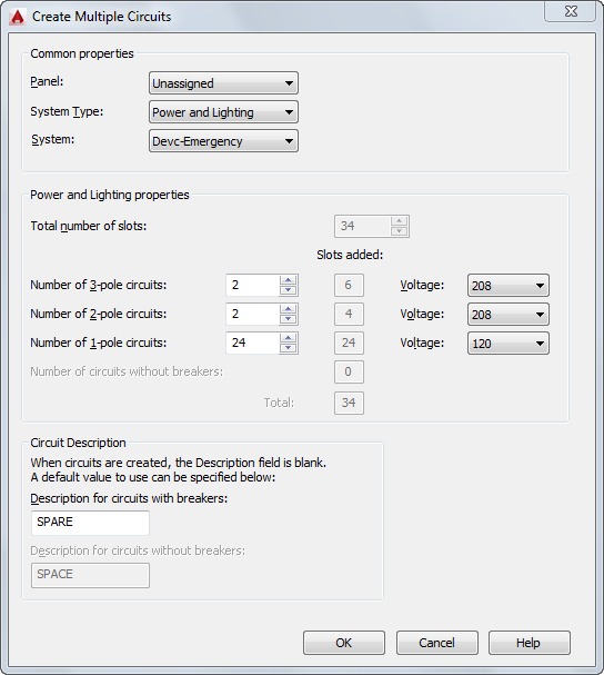 Anmerkung: Aktualisieren Sie nach dem Hinzufügen neuer Schaltkreise die Schaltkreis-Bauteillisten in der Zeichnung. Weitere Informationen finden Sie unter "Aktualisieren von Schalttafel-Bauteillisten".
