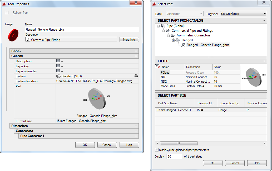 - Klicken Sie für innerhalb der Zeichnung erstellte eigenschaftsbasierte Werkzeuge auf die Bauteilabbildung in den Werkzeugeigenschaften, um das Dialogfeld Bauteil auswählen zu öffnen.