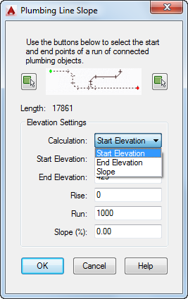 Klicken Sie im Dialogfeld Sanitärliniengefälle auf Startpunkt der Strecke wählen oder auf Endpunkt der Strecke wählen.