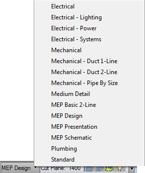 Zusätzlich zur Verwendung orthogonaler und isometrischer Ansichten in einer Zeichnung bietet AutoCAD MEP zahlreiche Darstellungseinstellungen, die das Aussehen von Objekten in einer Zeichnung steuern. Darstellungen steuern das Aussehen von Objekten in verschiedenen Ansichten. Darstellungskonfigurationen sind Gruppen von Darstellungen für bestimmte Aufgaben. Sie können beispielsweise von einer 1-Linien- in eine 2-Linien-Darstellungskonfiguration wechseln. Sie können auch in eine bereichspezifische Darstellungskonfiguration wechseln, wie beispielsweise eine, in der mechanische Systeme mit den angegebenen Farben und Linientypen angezeigt werden, alle anderen Systemtypen jedoch ausgeblendet sind.