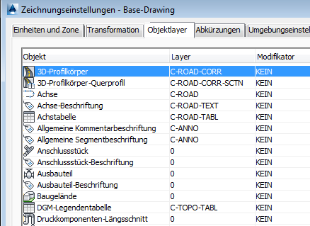 Für eine schnellere Verarbeitung deaktivieren Sie die Zeichnungslayer, die Objekte enthalten. Standardmäßig sind Entwurfsobjekte und ihre Beschriftungen über mehrere Layer verteilt. Achsen, Längsschnitte und andere Straßenentwurfsobjekte sind beispielsweise über mehrere Layer verteilt, die alle mit C-ROAD beginnen (siehe Abbildung 5). Wenn Sie die für den Straßenentwurf verwendeten Objekte auf weniger Layern zusammenfassen, können diese leichter ein- oder ausgeblendet werden.
