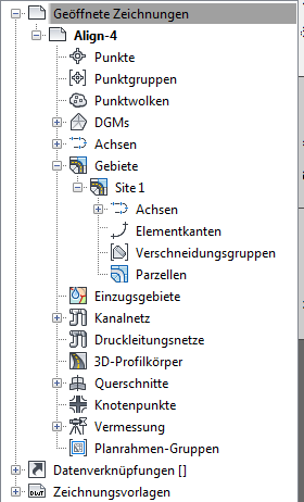 Auf dieser Registerkarte sind alle Objekte in einer Zeichnung oder einem Projekt in einer hierarchischen Struktur angeordnet, in der Sie navigieren können, wie Sie es aus Windows Explorer kennen.