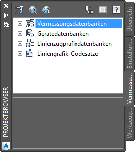 Vermessungsdaten werden nicht wie andere Objekte auf der Registerkarte Übersicht, sondern auf der Registerkarte Vermessung des Projektbrowsers verwaltet.