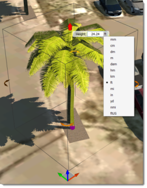 Anmerkung: Sie können die auf der Registerkarte Einheitenkonfiguration angegebene Vorgabeeinheit überschreiben, wenn Sie ein Objekt erstellen oder bearbeiten. Wählen Sie für ein ausgewähltes Objekt die Maßeinheit im kleinen Werkzeugkasten aus, und wählen Sie die entsprechende Maßeinheit aus der Dropdown-Liste.