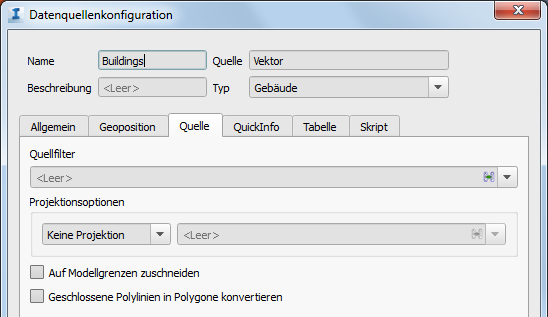 Sie können Projektionsoptionen für importierte Daten angeben. Durch Projektionsoptionen wird die Beziehung zwischen den importierten Daten und der Erhebung des Geländes bestimmt.