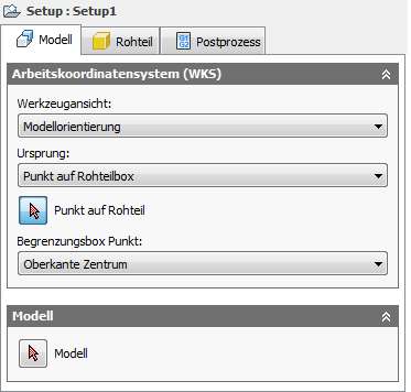 In diesem zweiten Lernprogramm erstellen Sie ein Setup, um den Ursprung des WKS zu definieren und Ihr Modell zu wählen.