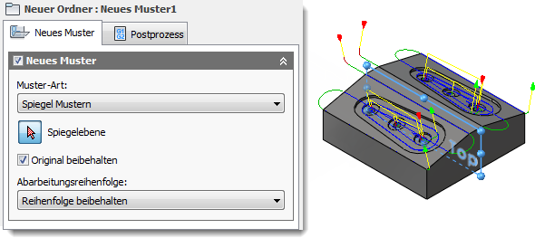 - Wählen Sie schließlich im Dropdown-Menü Abarbeitungsreihenfolge aus, ob die Operationen im Muster anhand von Werkzeug oder Operation neu sortiert werden sollen oder ob die Operationsreihenfolge im Muster beibehalten werden soll.