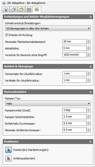 Der Radius des vertikalen Bogens zum Glätten der Einfahrbewegung, wenn diese zum Werkzeugweg selbst erfolgt.