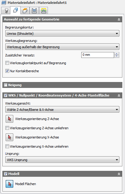 Diese vorgabemäßig aktivierte Option sorgt dafür, dass das im Setup ausgewählte Modell zusätzlich zu den in der Operation ausgewählten Modellflächen einbezogen wird. Wenn Sie dieses Kontrollkästchen deaktivieren, wird der Werkzeugweg nur für die in der Operation ausgewählten Flächen erzeugt.
