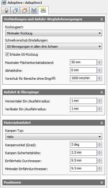 Der Radius des vertikalen Bogens zum Glätten der Einfahrbewegung, wenn diese zum Werkzeugweg selbst erfolgt