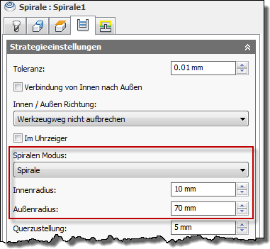 Die Strategie Spiralschlichten bietet mehrere unterschiedliche Betriebsmodi. Der Modus wird auf der Registerkarte Strategieeinstellungen aus der Dropdown-Liste Spiralenmodus ausgewählt.