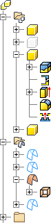 Erweitern Sie einen Körper im Ordner, um die auf die einzelnen Körper angewendeten Elemente aufzulisten. Unterschiedliche Körper können ein Element gemeinsam verwenden, z. B. eine Rundung, eine Fase oder eine Bohrung.