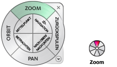 Mit diesem Rad können Sie auf grundlegende 2D-Navigationswerkzeuge zugreifen. Das ist hilfreich, wenn Sie kein Zeigegerät mit Rollrad haben.