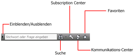 InfoCenter befindet sich vorgabemäßig oben rechts im Inventor-Bildschirm und enthält Symbole für den direkten Zugriff auf zahlreiche Informationsquellen.
