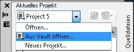 Wenn ein Vault-Projekt geöffnet wird, zeigt der Projektmanager einen