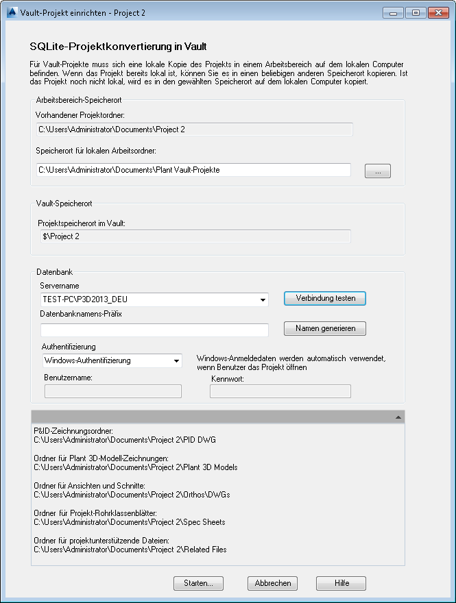 Vault-Projekte verwenden SQL Server für die Plant-Datenbank. Wenn Ihr Projekt das Vorgabeformat (SQLite) verwendet, wird dieses bei der Migration in das SQL Server-Format umgewandelt.