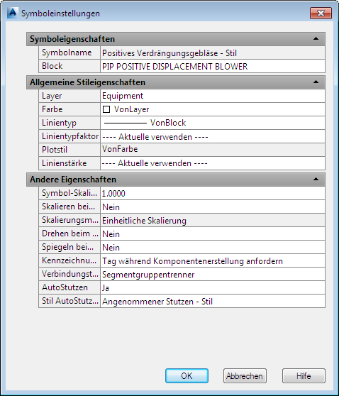 Listet allgemeine Eigenschaften auf, die einer Komponente zugewiesen werden, wenn diese in eine Zeichnung eingefügt wird.