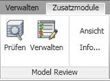 Autodesk Revit Model Review basiert auf zwei Funktionen; Prüfen und Verwalten. Beide Werkzeuge finden Sie in der Multifunktionsleiste auf der Registerkarte Zusatzmodule
