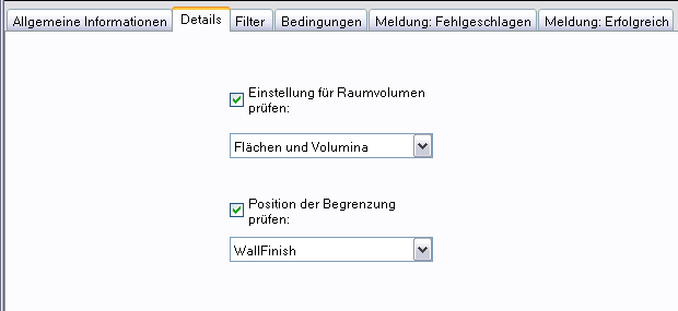 | Einstellung für Raumvolumen prüfen | Legen Sie fest, ob die Option für Raumvolumina aktiviert werden soll und welche dieser Optionen verwendet werden soll: Flächen, Volumina oder beide. |