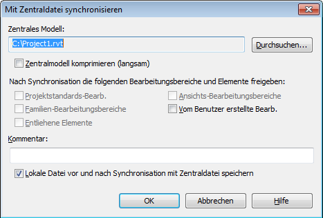 Sie versuchen, eine lokale Datei mit dem zentralen Projektmodell zu synchronisieren.