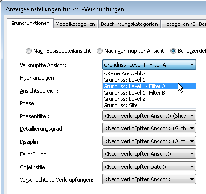 - Gehen Sie im Dialogfeld Anzeigeeinstellungen für RVT-Verknüpfungen auf der Registerkarte Grundfunktionen wie folgt vor: