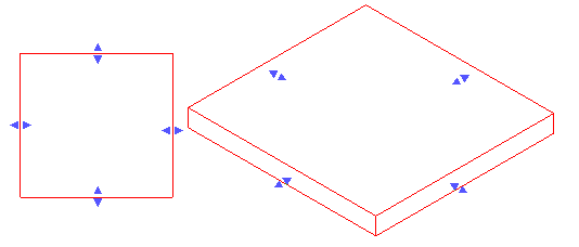 - Speichern Sie die Familie, und laden Sie sie in ein Projekt. Wenn Sie das Bauteil im Zeichenbereich des Projekts auswählen, werden Formgriffe angezeigt, wo die Referenzebenen ausgerichtet und bemaßt wurden.