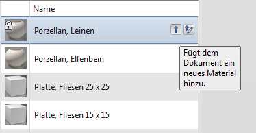 Um dem aktuellen Projekt ein Material hinzuzufügen, suchen Sie dieses zuerst in einer bestehenden Bibliothek. Anschließend haben Sie folgende Möglichkeiten: