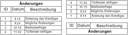 - Von unten nach oben: Die Spaltenüberschriften befinden sich am unteren Ende der Änderungsliste. Die Zeilen mit den Änderungen beginnen am unteren Ende und werden von unten nach oben angeordnet.