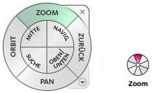 Die Voll-Navigationsräder (groß und klein) beinhalten übliche 3D-Navigationswerkzeuge, die sowohl für die Ansicht eines Objekts als auch für die Gebäude-Navigation genutzt werden.