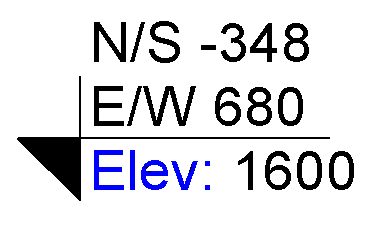 Koordinaten werden entweder relativ zum Vermessungspunkt oder relativ zum Projekt-Basispunkt angegeben. Dies ist davon abhängig, welcher Wert für den Typenparameter Koordinatenursprung für die Punktkoordinatenfamilie festgelegt wurde.