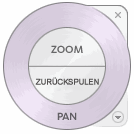 Um mit den Rädern zu interagieren, ziehen Sie in der Regel eines der Radsegmente bei gedrückter Maustaste. Wenn ein Rad angezeigt wird, klicken Sie auf eines der Segmente, und halten Sie die Taste des Zeigegeräts gedrückt, um das Navigationswerkzeug zu aktivieren. Durch Ziehen richten Sie die aktuelle Ansicht neu aus. Wenn Sie die Taste wieder freigeben, kehren Sie zum Rad zurück.