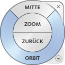Jedes Rad ist in mehrere Steuerflächen unterteilt. Jedes Segment enthält ein Navigationswerkzeug, mit dem Sie die aktuelle Ansicht des Modells ausrichten können. Die Verfügbarkeit der Navigationswerkzeuge hängt davon ab, welches Rad aktiv ist.