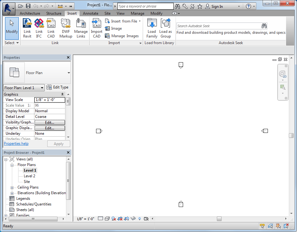 | Anzeigen einer Projektansicht, die noch nicht geöffnet wurde | Navigieren Sie zu der Ansicht im Projektbrowser, und doppelklicken auf den Ansichtsnamen. |