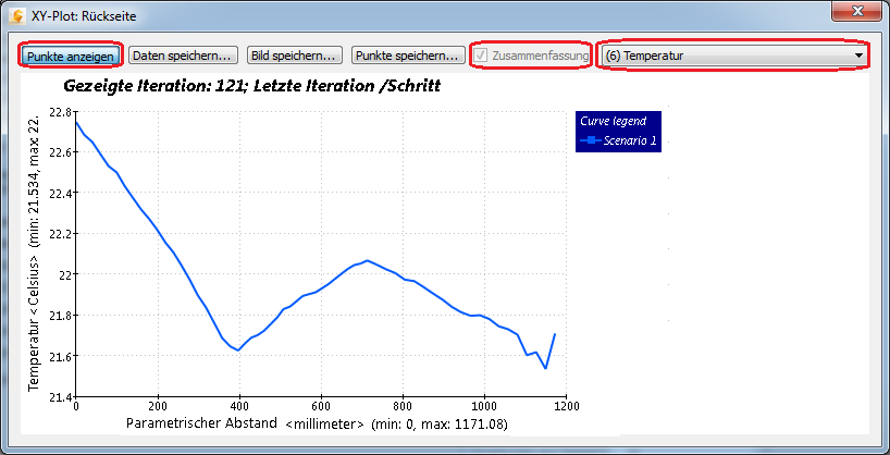 18. Um die Temperaturen bei den hinteren Passagieren zu plotten, öffnen Sie das Dialogfeld XY-Plot (wenn es nicht bereits geöffnet ist). Geben Sie den Titel hinten für XY-Plot ein.