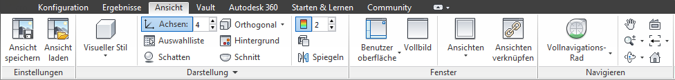 Verwenden Sie die Registerkarte Ansicht zum Steuern der Modelldarstellung und zum Anpassen der Benutzeroberfläche: