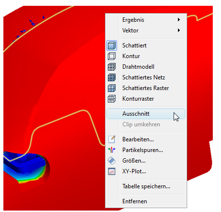24. Um diese Partikelspuren für die spätere Verwendung zu speichern, klicken Sie mit der rechten Maustaste außerhalb des Modells und wählen Ansichtseinstellungen speichern…. Geben Sie den Namen Partikelspuren für die Ansichtseinstellungsdatei ein.