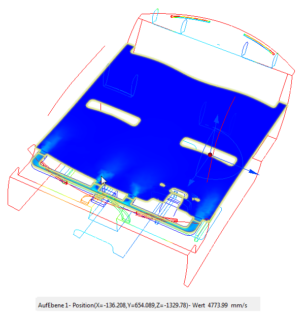 9. Klicken Sie mit der linken Maustaste auf die Ergebnisebene und wählen Sie das Symbol X. Ziehen Sie die Ebene in die Mitte des Fahrzeugs: