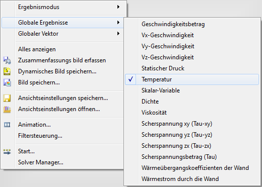 3. Um die Temperatur auf dem Modell anzuzeigen, klicken Sie mit der rechten Maustaste und wählen Globale Ergebnisse. Wählen Sie in der Liste die Option Temperatur aus.