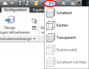 Um das Modell als Umriss oder transparent anzuzeigen, wählen Sie eine Option aus dem Menü Visueller Stil im Schnellzugriff-Werkzeugkasten: