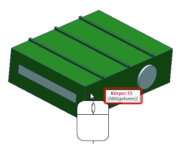 Wenn Sie den Mauszeiger in den Konfigurationstasks über ein Teil oder eine Fläche führen, wird dieses bzw. diese grün: