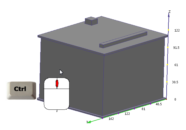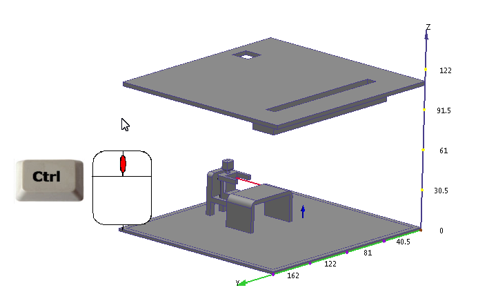 6. Drücken Sie zum Anzeigen aller Bauteile die STRG-Taste, und klicken Sie im Grafikfenster mit der mittleren Maustaste neben das Modell: