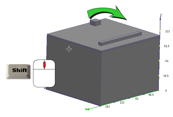 2. Drücken Sie zum Drehen des Modells die Umschalttaste, halten Sie die mittlere Maustaste gedrückt, und bewegen Sie die Maus: