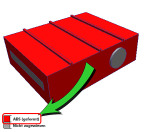 8. In der Designstudienleiste können Sie anhand der Teilfarbe überprüfen, ob das ABS-Material korrekt zugewiesen wurde: