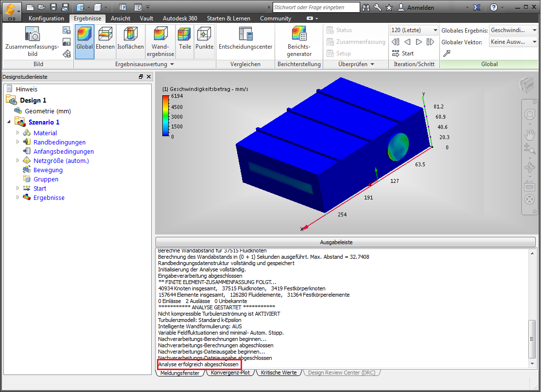 In diesem Schritt starten wir die Strömungssimulation. Die Ausführung dauert etwa 10 Minuten.