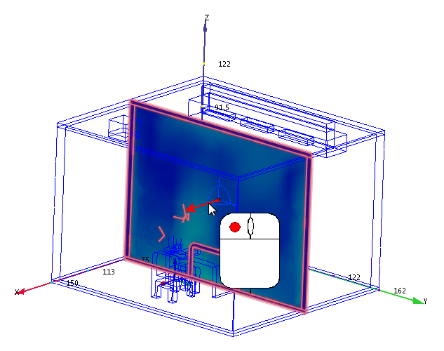 3. Sie möchten jetzt die Strömung rund um die Person im Raum darstellen. Um die Ebene zu verschieben, klicken Sie auf die Achse in der Mitte der Fläche, und ziehen Sie sie auf die Person im Raum.