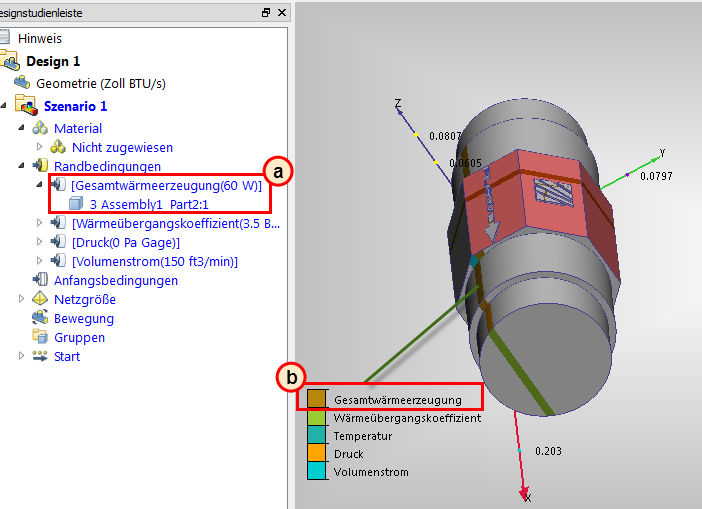 a. In der Designstudienleiste sollte die Bedingung Gesamtwärmeerzeugung aufgelistet sein und den Wert 60 W haben.