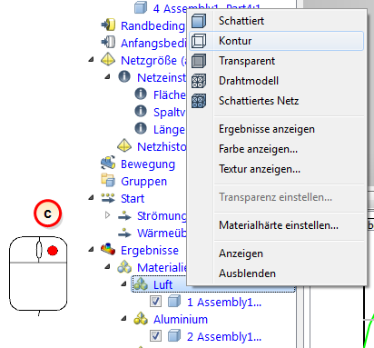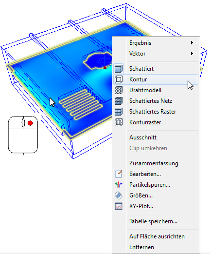 Dazu verwenden wir einige leistungsstarke Werkzeugen zur Visualisierung: Ergebnisebenen und Isoflächen. Damit können wir die Strömung im Gehäuse darstellen.
