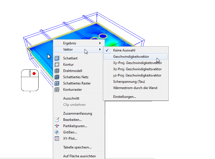 4. Klicken Sie zum Anzeigen von Vektoren auf der Ebene mit der rechten Maustaste, und wählen Sie Vektor. Klicken Sie auf Geschwindigkeitsvektor: